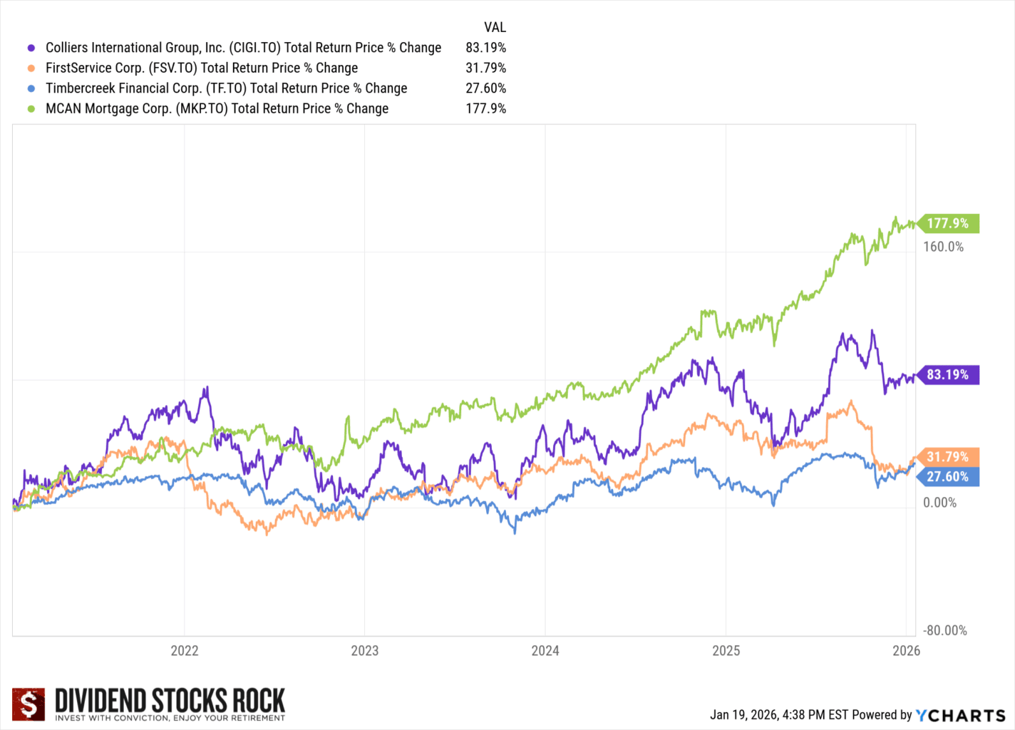 As I said at the top, Canada’s banks give plenty of exposure to the real estate market – along with much better diversification and much wider competitive advantage moats. So that’s where you’ll find my portfolio hanging out, as opposed to in Canadian real estate stocks such as alternative mortgage lenders.